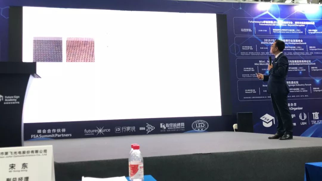 第十五屆深圳國(guó)際LED展會(huì)正在如火如荼進(jìn)行中,廣大觀展朋友在聚飛9-G16展臺(tái)現(xiàn)場(chǎng)觀賞實(shí)物后,尤為關(guān)心聚飛光電1020、3012新產(chǎn)品發(fā)布會(huì)。22日上午11點(diǎn),惠州聚飛副總經(jīng)理宋東先生,在9號(hào)館未來(lái)標(biāo)識(shí)學(xué)院大會(huì)場(chǎng),為產(chǎn)業(yè)鏈伙伴們及國(guó)內(nèi)外朋友們帶來(lái)了聚飛Chip新產(chǎn)品、RGB新產(chǎn)品全方位解讀。宋總親自演講的RGB新產(chǎn)品發(fā)布吸引到大批業(yè)內(nèi)精英觀摩,演講主要展示了聚飛RGB 小點(diǎn)間距1020&透明屏3012產(chǎn)品,聚飛1020小間距產(chǎn)品具有熱電分離、高可靠性;焊接平整、強(qiáng)度高;磨砂黑膠高對(duì)比度;光型飽滿、出光均勻、高一致性等特點(diǎn)。而3012半戶外側(cè)發(fā)光全彩顯示屏產(chǎn)品具有高防護(hù)性;焊接強(qiáng)度高;小點(diǎn)間距、高通透率;高壓漏電分選、高可靠性等特點(diǎn)。宋總通過(guò)對(duì)聚飛光電介紹、小間距顯示屏與透明屏行業(yè)痛點(diǎn)分析,進(jìn)而深入講解聚飛產(chǎn)品優(yōu)勢(shì)、產(chǎn)品規(guī)格介紹,加深了客戶對(duì)聚飛的認(rèn)識(shí)。